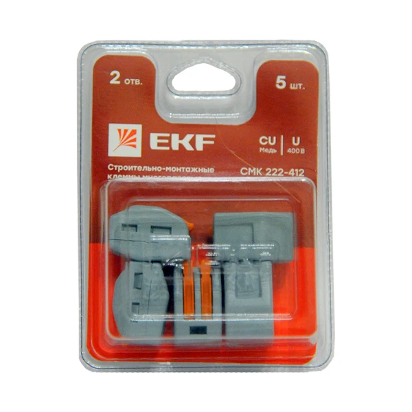 Клемма СМК 222-412, 2 контакта, 0.2-4 мм², 380 В, 32 А, серый, обжимная