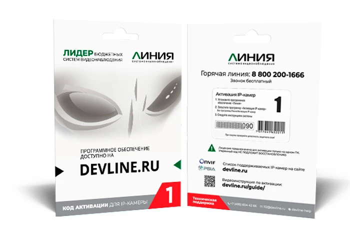 Программное обеспечение «Линия IP» (SKU: M100579) предназначено для включения IP-камер в систему видеонаблюдения. Лицензия активируется через «Мастер активации» или сервис a.devline.ru. Доступны методы активации по телефону и через интернет.