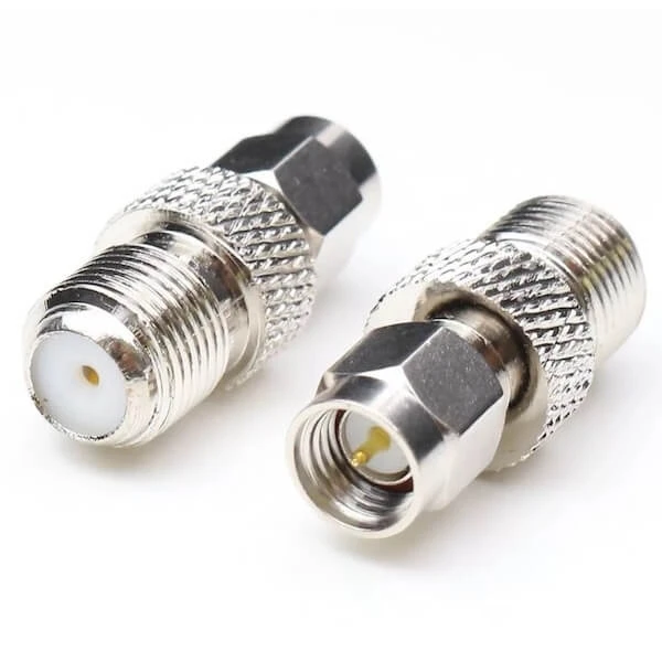 Переходник SMA папа - F мама для подключения внешних WiFi антенн с 75-омным кабелем к роутерам, имеющим SMA реверсные антенные выходы.